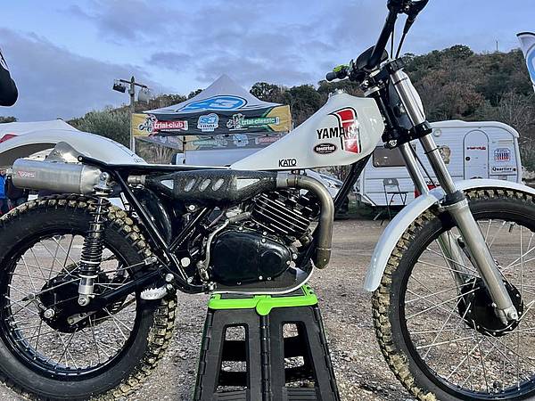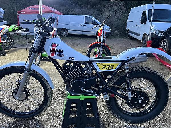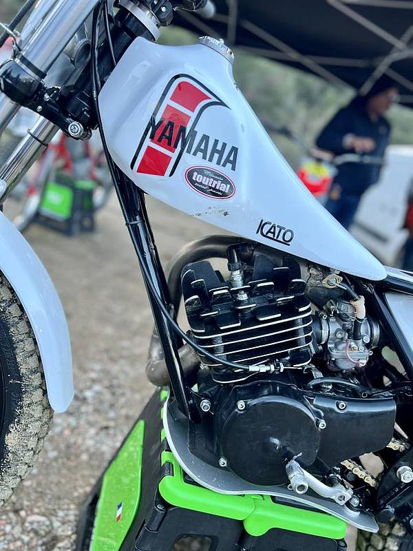 A l'ouverture du championnat de France à Corbère , l'ami Alexis s'est présenté avec une toute nouvelle moto , une très rare Yamaha Kato sur laquelle l'équipe de Julien Panabieres ( Toutrial à Perpignan) a bien bossé !